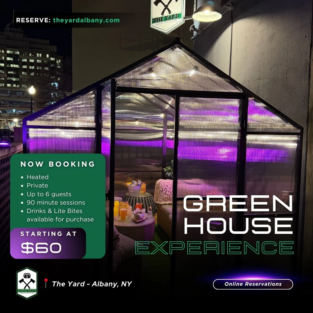 Parking for The Yard is available in many areas, as indicated in yellow. The large parking lot across the street is open to the public and is managed by the First Church of Albany; they do charge a small fee for use of the lot. Public parking streetside is available on Sheridan Ave., Columbia St., Orange St., Monroe St., and North Pearl St.; streetside parking is free on weekends and after 5 p.m. on weekdays. We encourage our guests to arrive approximately 30 minutes early to ensure ample time to find parking before any reservation.